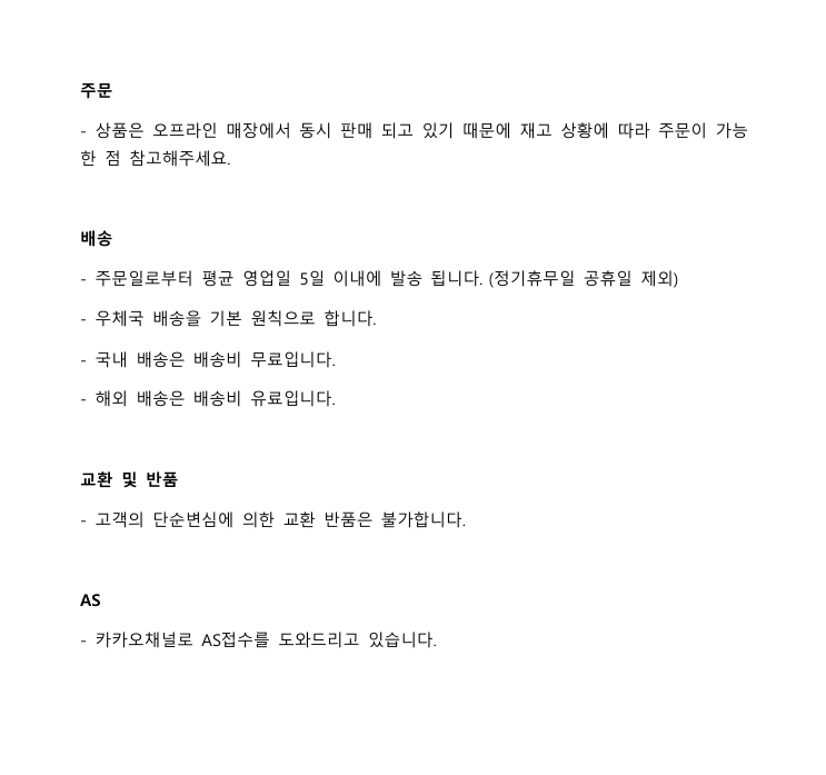 • A/S서비스 :  유.무상 보장